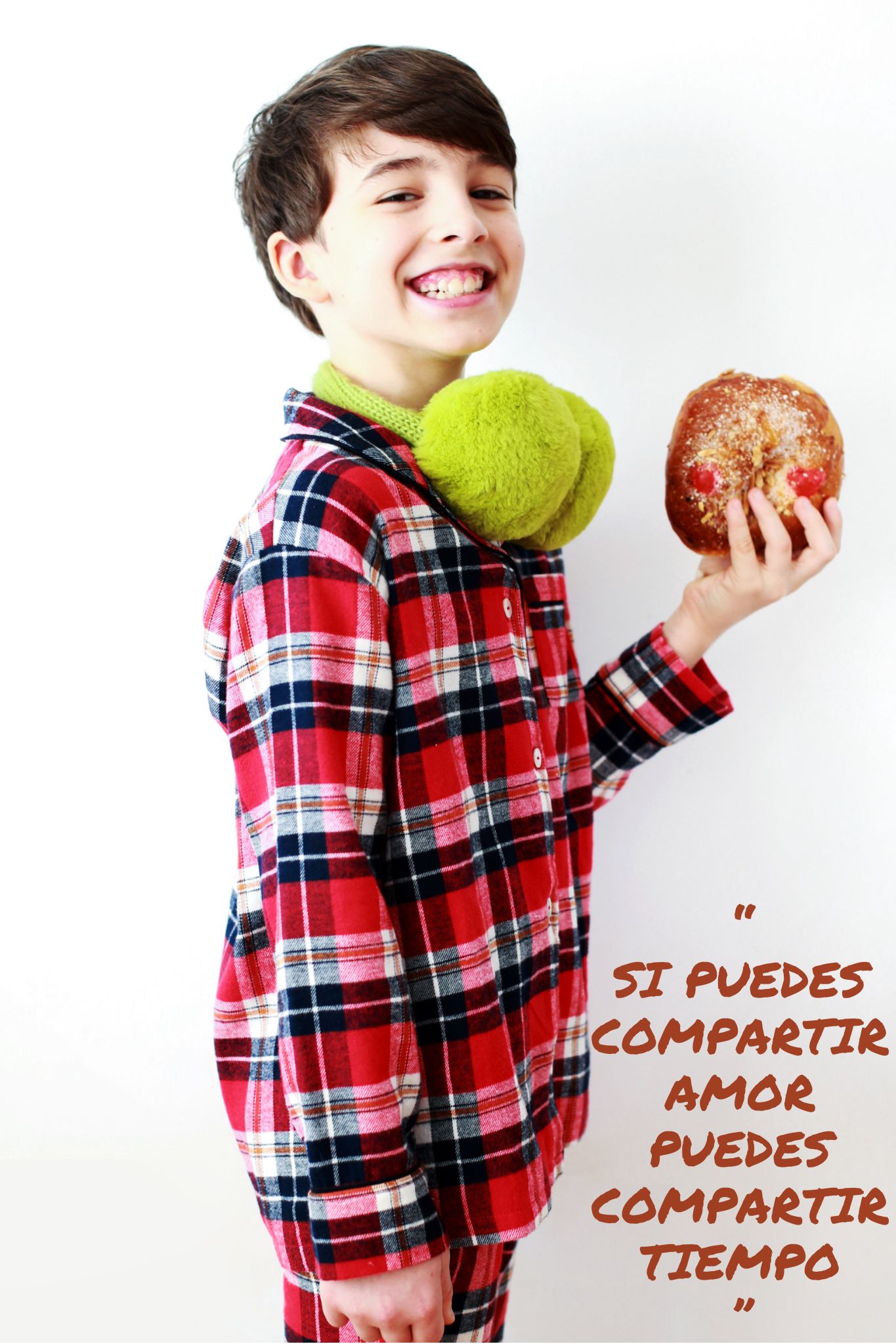 Daniel, siempre divertido, entiende que la comodidad no está reñida con el estilo. En esta foto lo veis con su pijama de tartán y un mini roscón que él mismo preparó. Me mira con esa sonrisa que desarma y me dice con picardía: